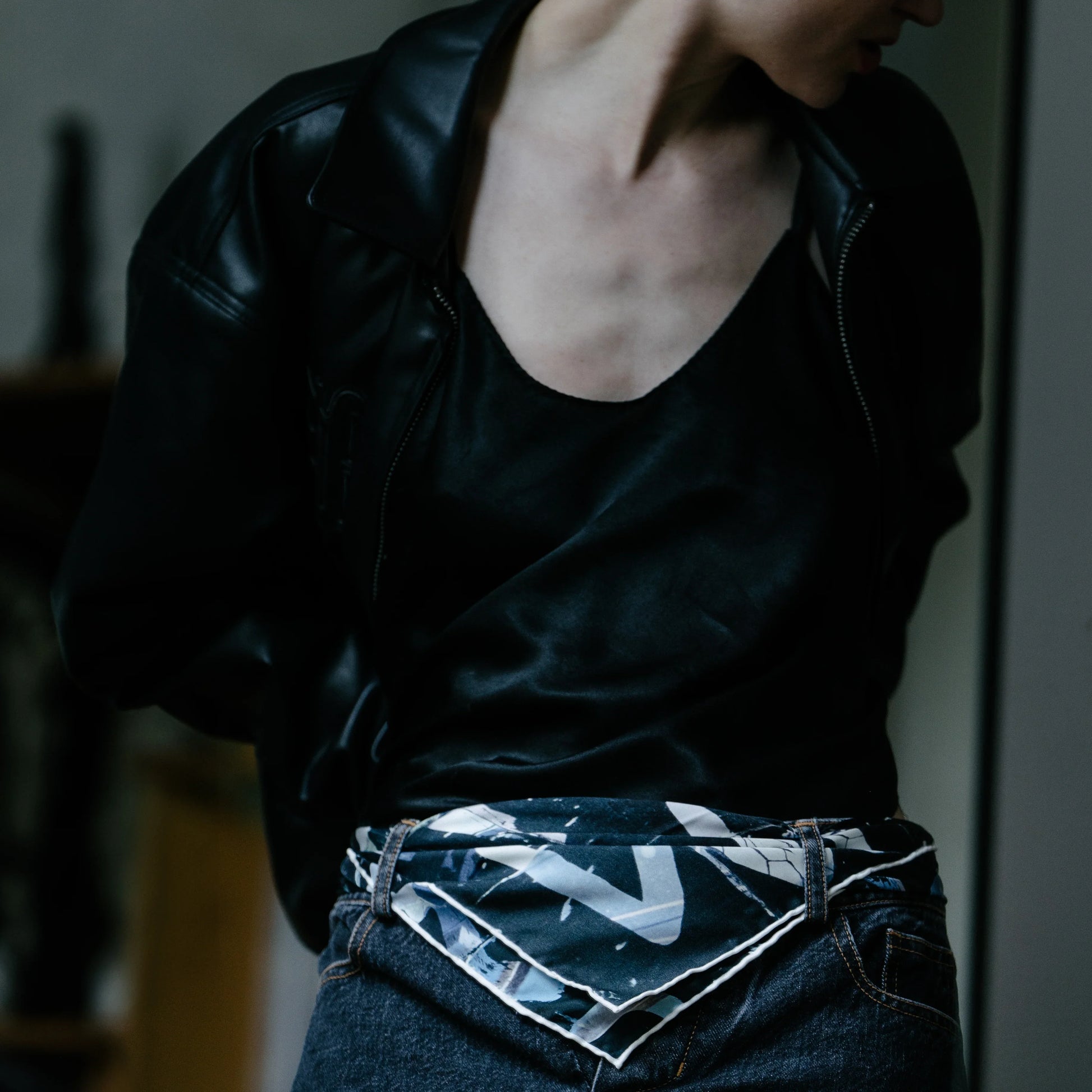 'Time Was All I Wanted' are the words of the poet Emily Dickinson that I used to make this painting. I love the idea of you wearing this, because it’s a work of art that holds a universal message. The message is apparent only when the scarf is unfolded, but it’s always there: time was all I wanted.