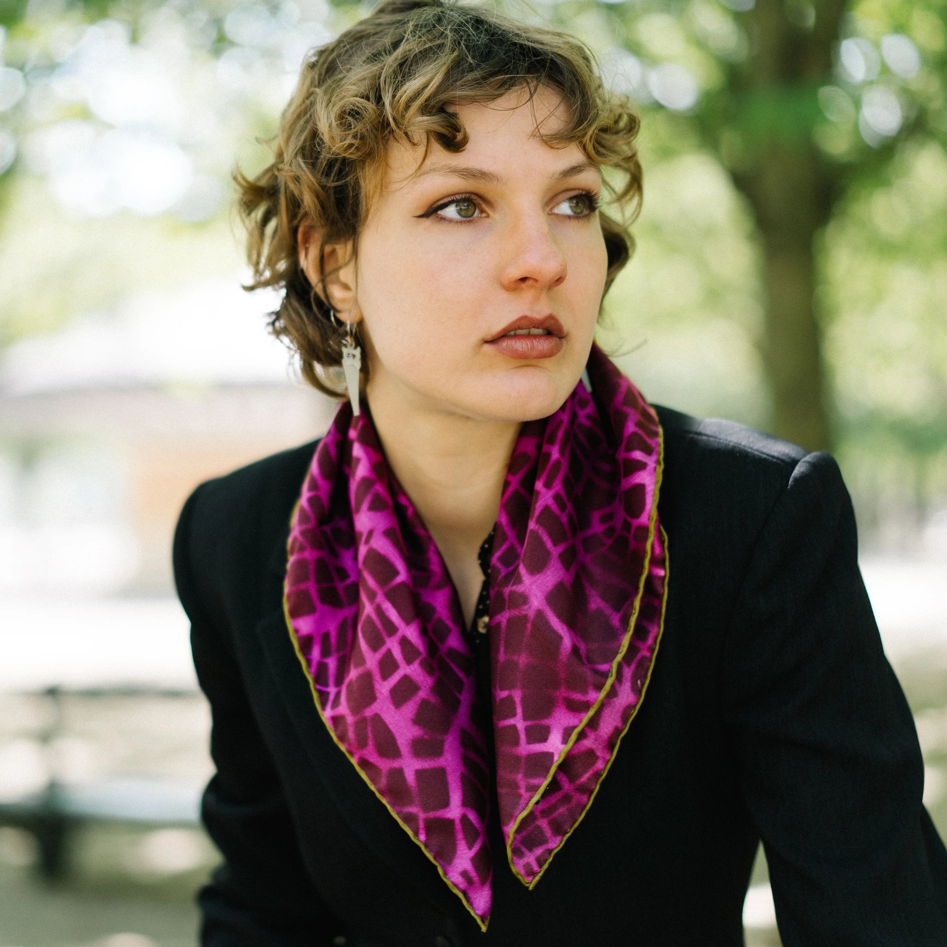 ‘La Vie en Rose’, tout comme la chanson d'Édith Piaf du même titre, évoque la beauté et l'amour du quotidien malgré les aléas de la vie. Reflétant ce sentiment, le foulard change de couleur et d'état d'âme lorsque la lumière frappe sa surface. L'œuvre originale qui a inspiré ce foulard était basée sur une série de lettres manuscrites, tissant ensemble les fils du passé et du présent.