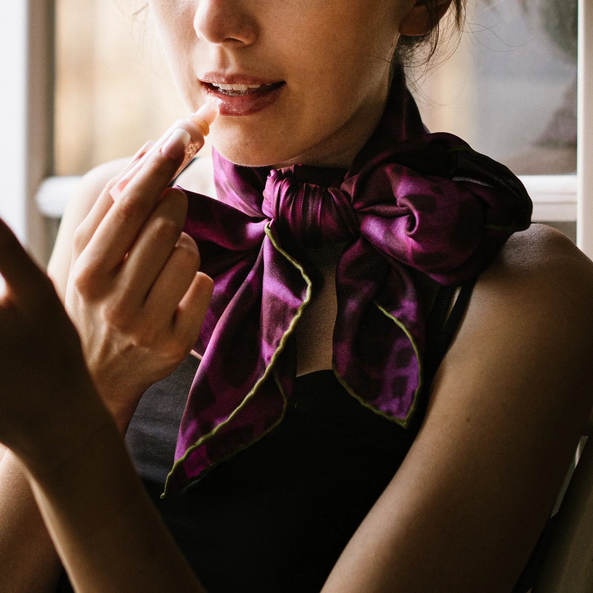 ‘La Vie en Rose’, like the Edith Piaf song of the same title, evokes the beauty and love of the everyday despite life’s setbacks. Reflecting this sentiment, the scarf changes its color and mood when light hits its surface. The original painting that inspired this scarf was based on a series of hand-written letters, knitting together the threads of past and present.